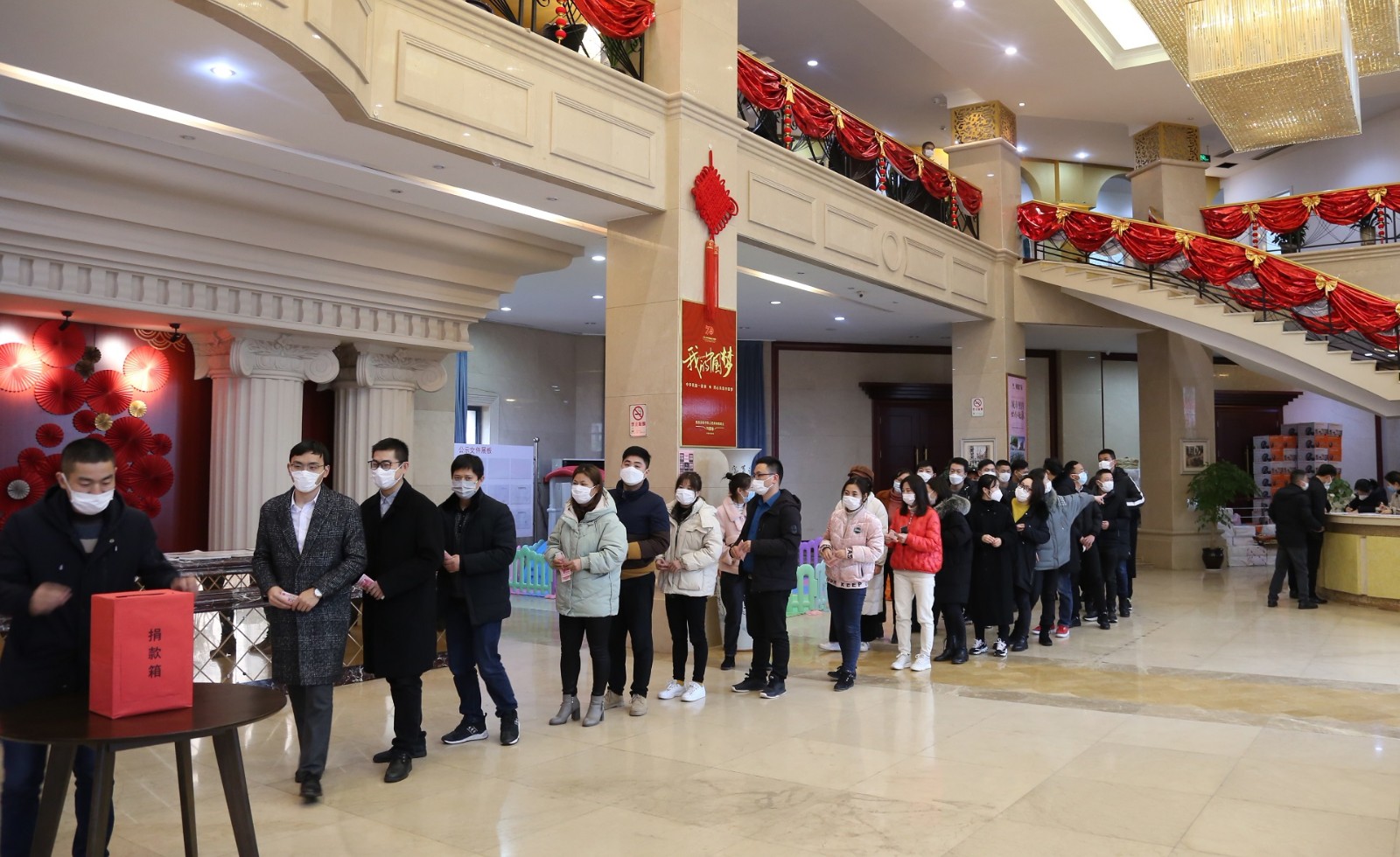2月28日下午,市城建集團(tuán)在公司一樓組織員工開展支持疫情防控工作捐款儀式。